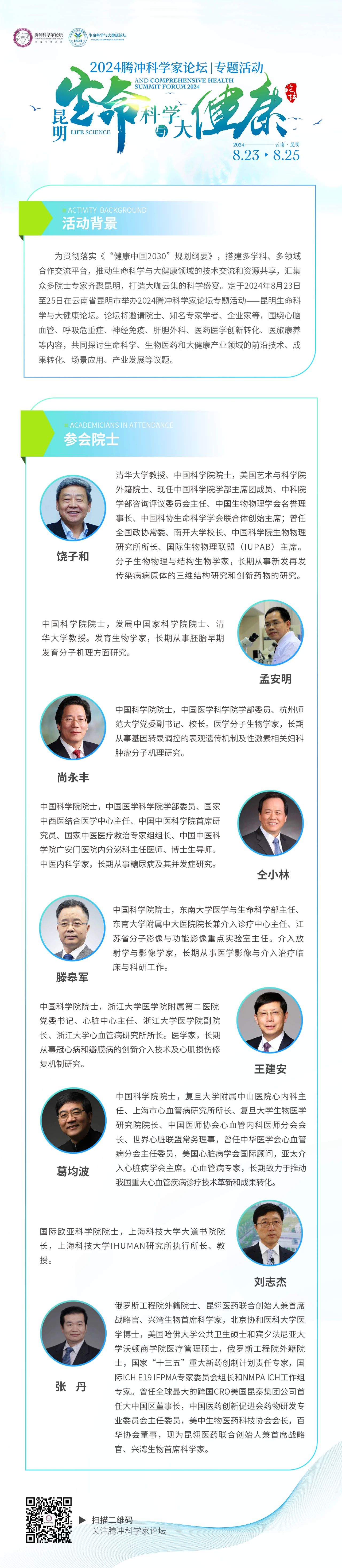 2024腾冲科学家论坛 | 重磅预热!昆明生命科学与大健康论坛参会院士阵容公布