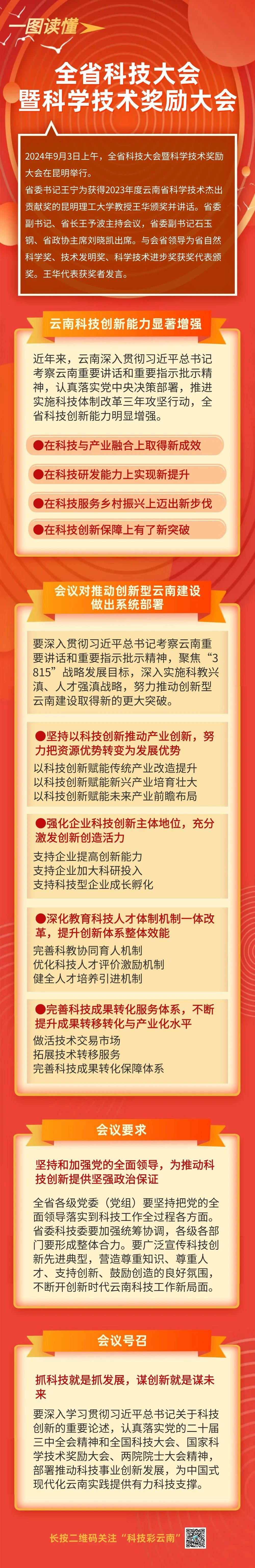 9月3日,云南省科技大会暨科学技术奖励大会在昆明举行,让我们认真读懂会议精神,全面落实创新型云南建设系统部署。