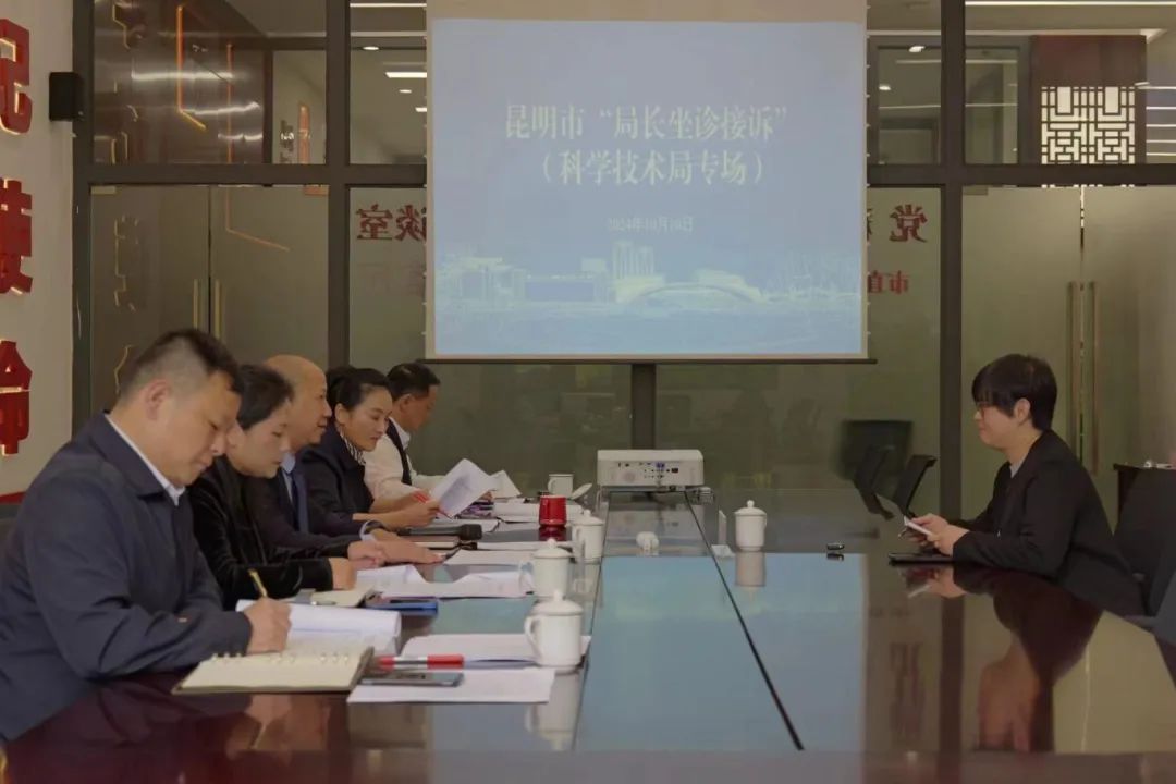 10月10日,昆明市第五期“局长坐诊接诉”由市科技局局长刀福东率队“坐诊”,受理企业在昆投资、研发、生产、经营中遇到的科技创新业务领域难点问题、政策咨询、项目申报、奖补兑现和意见建议等,诚邀广大企业积极参与,客观真实反映诉求。