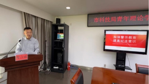 在主题交流环节,市科技局年轻科级干部代表政策法规与科技安全处处长张宇凡,事业单位优秀青年代表技术合同认定登记站支部书记、主任罗芳,新入职青年代表孙存林围绕深入贯彻落实中央八项规定精神,“以警示教育为基,筑牢业务工作廉洁防线”为主题进行交流发言。