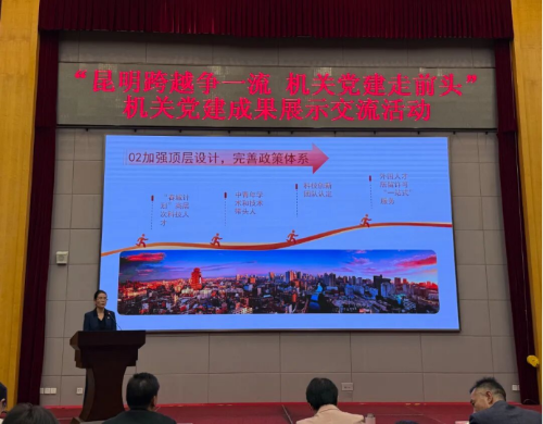 10月29日的“昆明跨越争一流 机关党建走前头”机关党建成果展示交流活动中,昆明市科技局机关党委展示了党建擦亮科创人才新品牌的成果。在市委、市政府的领导下,市科技局党组坚持党管人才,结合昆明市产业发展对科技人才的需求,实施书记领办人才项目,通过党建引领、协调资源、搭建平台、争取项目、优化环境,不断将人才优势转化为创新优势,为全市产业发展注入人才动力。