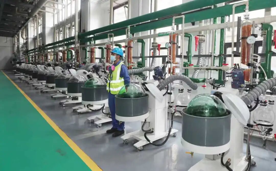 云南省贵金属新材料产业园内,旋转蒸发仪在进行产品浓缩干燥。李海曦/摄