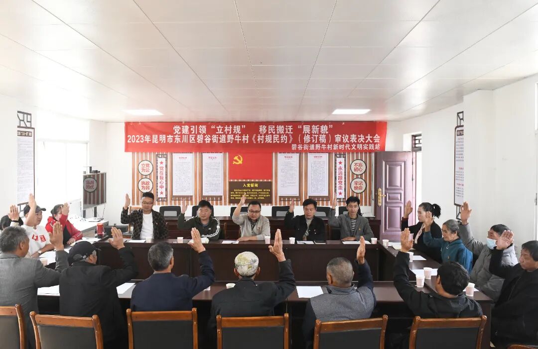 东川区碧谷街道野牛村《村规民约》(修订稿)审议表决大会。刘凯达/摄