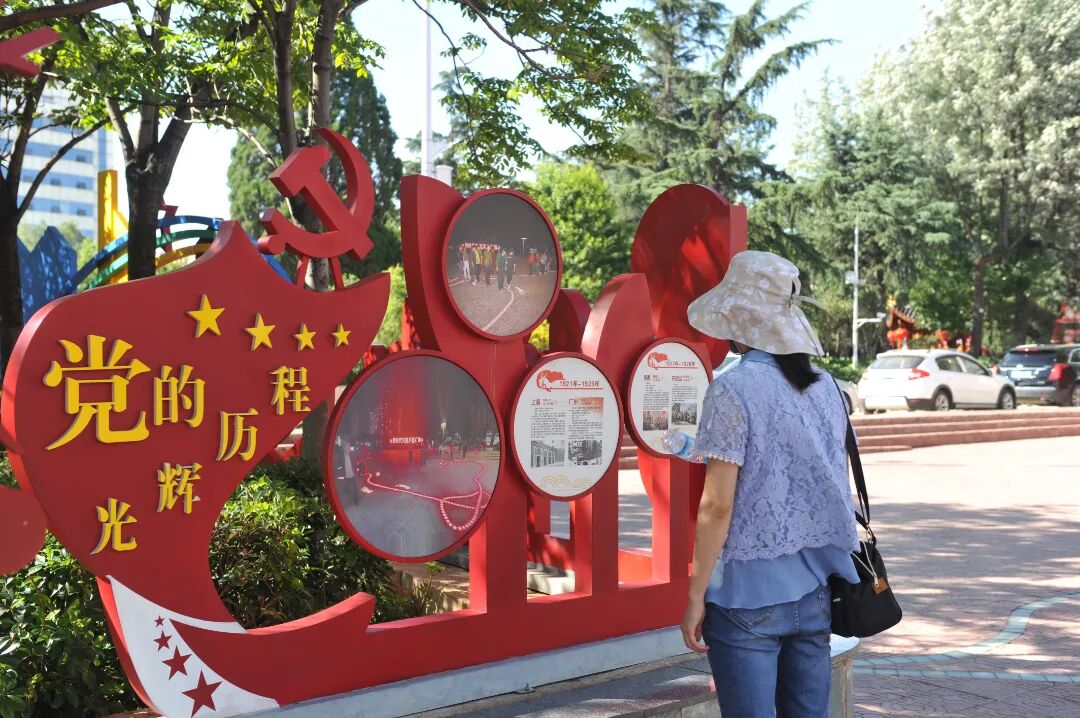 市民观看“党史学习教育长廊”。刘凯达/摄